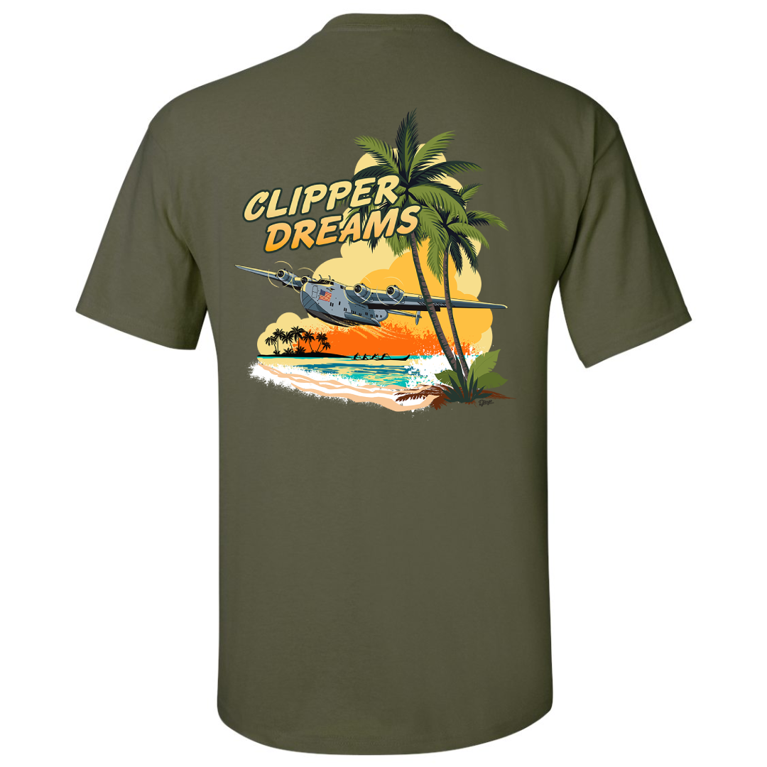 Our Clipper Dreams T-Shirt memorializes one of the largest seaplanes ever built! Twelve Boeing Clippers were made, with nine of those serving Pan Am’s Fleet. Built for luxury, these aircraft could cross the Atlantic and Pacific oceans in style and comfort!