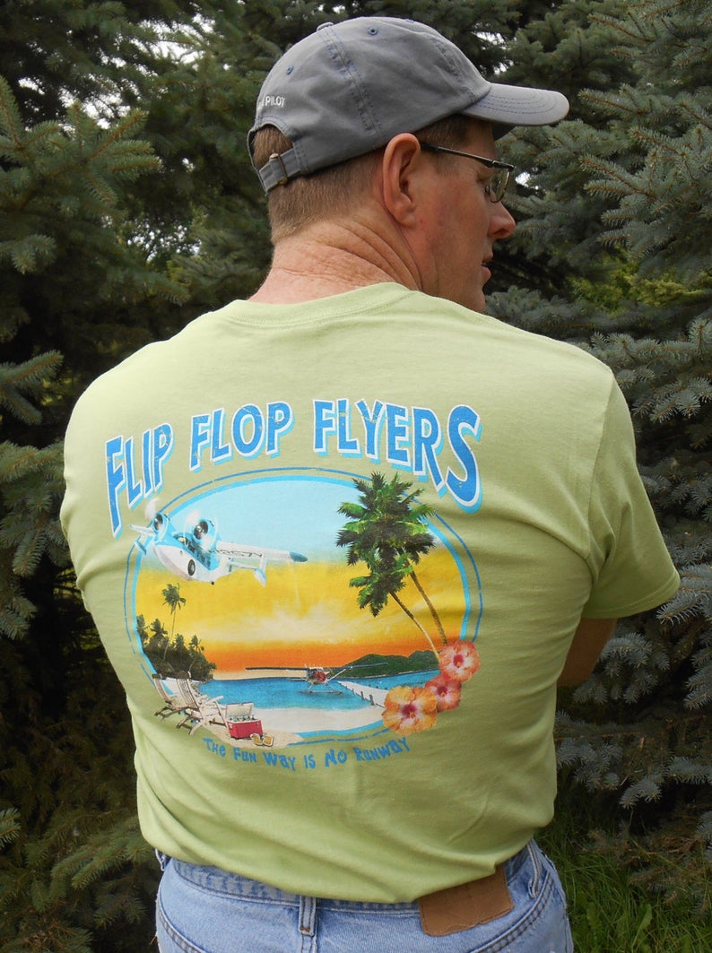 Celebrate the laid back flip flop way of life seaplane pilots enjoy with this great Caribbean themed seaplane t-shirt. Like our other shirt designs this shirt was inspired by our real life experiences as seaplane pilots.