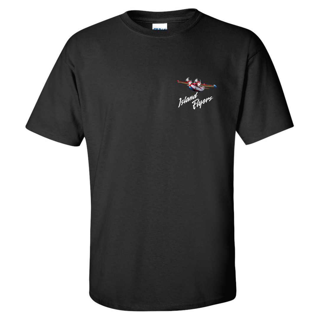 Black shirt features a Grumman Goose flying boat on both the front and rear images.
